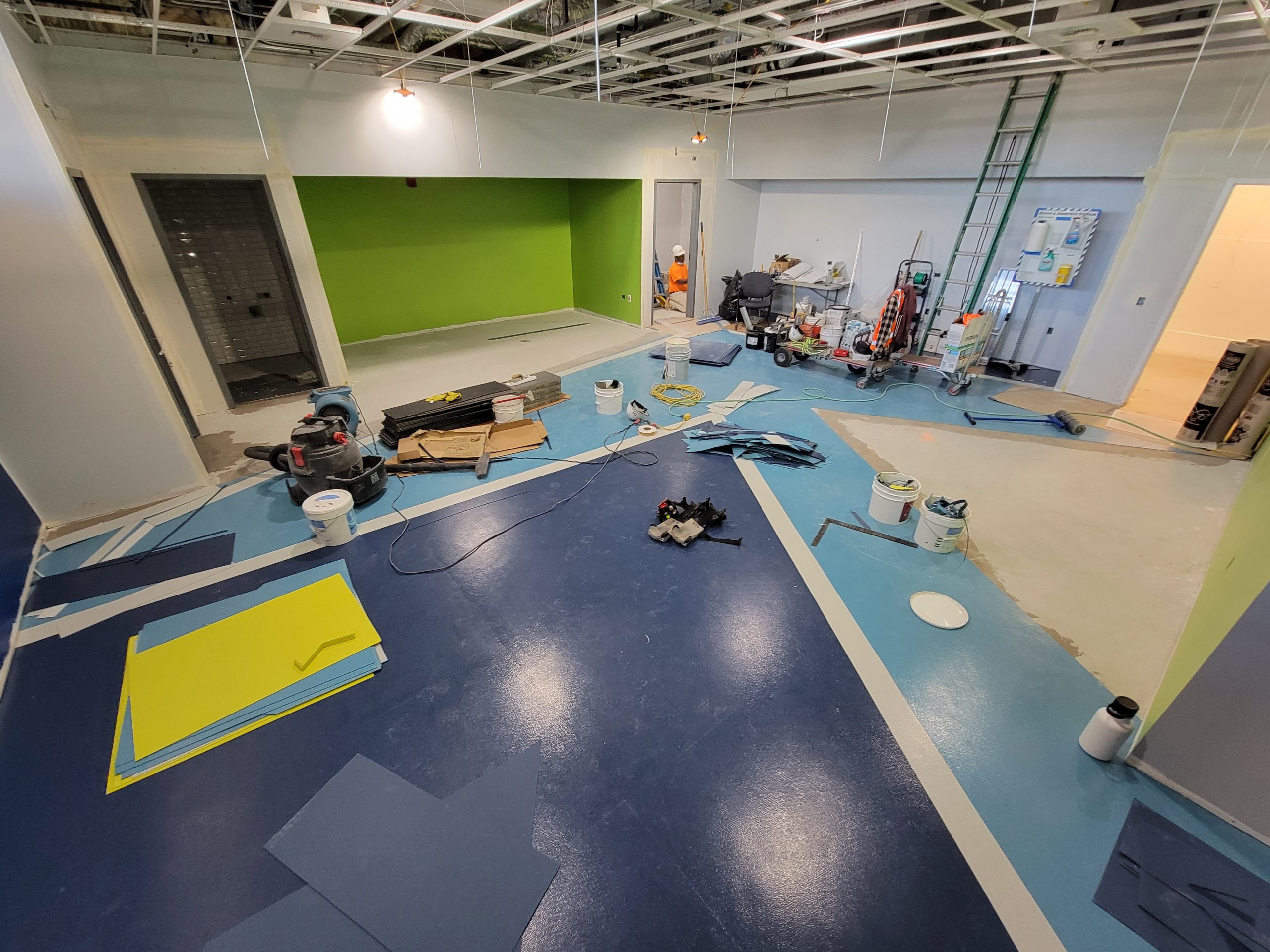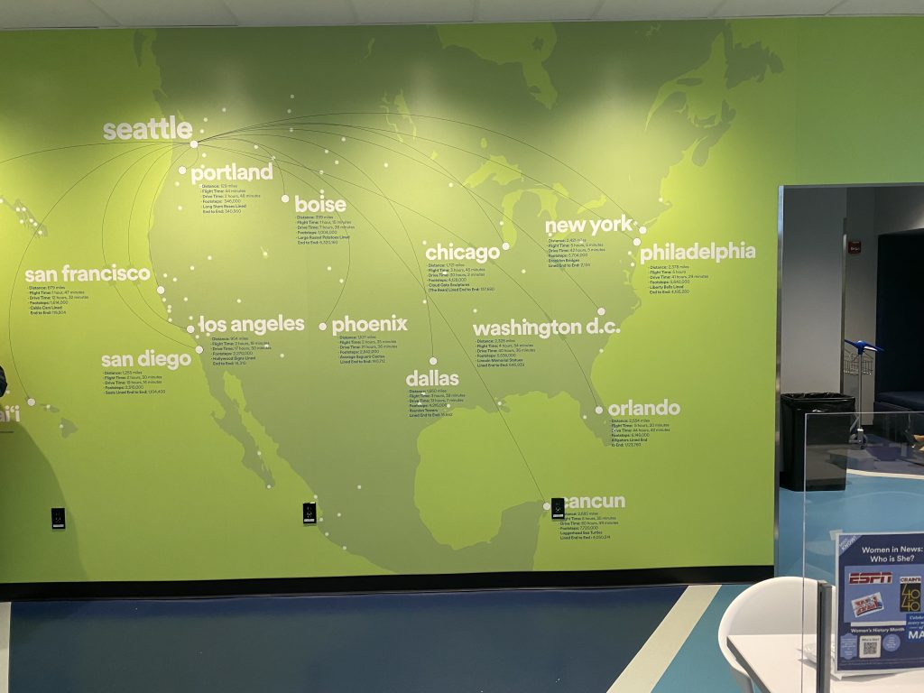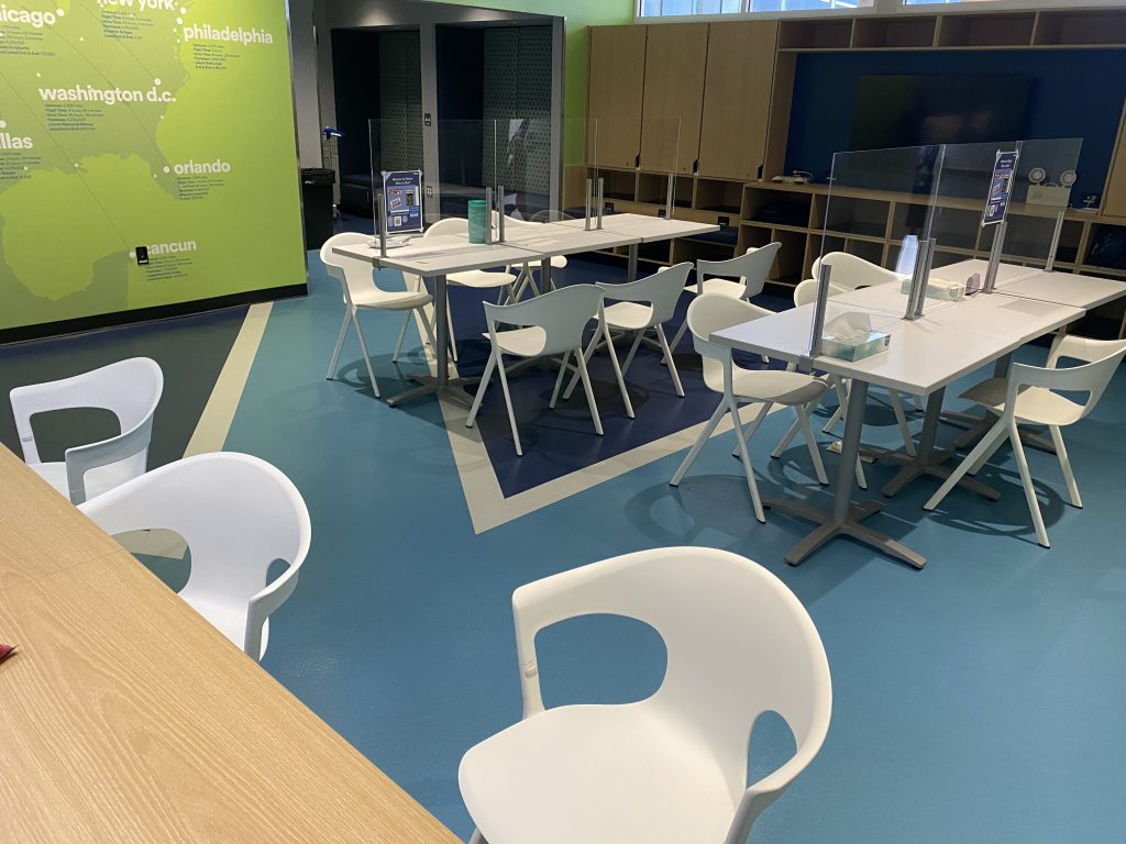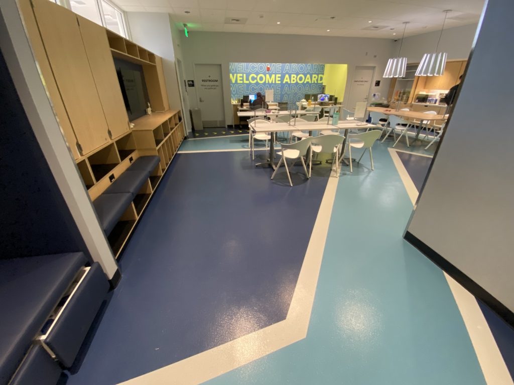 Alaska Airlines asked us to complete a lounge for minors that would be warm friendly and inviting. It would be anchored by the foundation of a plane drawing sketched into the floor using resilient modern materials that would work for the design as well as the function and durability of the space.